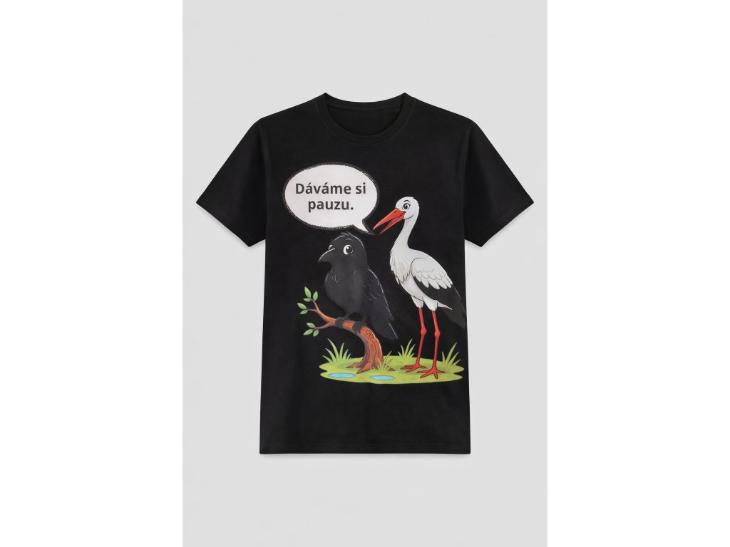 Tohle triko je mistrem nonverbální komunikace. Nápis "Dáváme si pauzu" je dokonale víceznačný – může znamenat pauzu ve vztahu, v práci, v životě, v čemkoli.